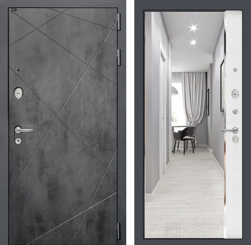 Входная дверь Лабиринт LOFT с зеркалом Панорама в цвете "Белый софт" – это идеальное решение для тех, кто ценит безопасность и современный дизайн. Данная модель подойдет как для квартир, так и для офисов, обеспечивая надежную защиту и уют.