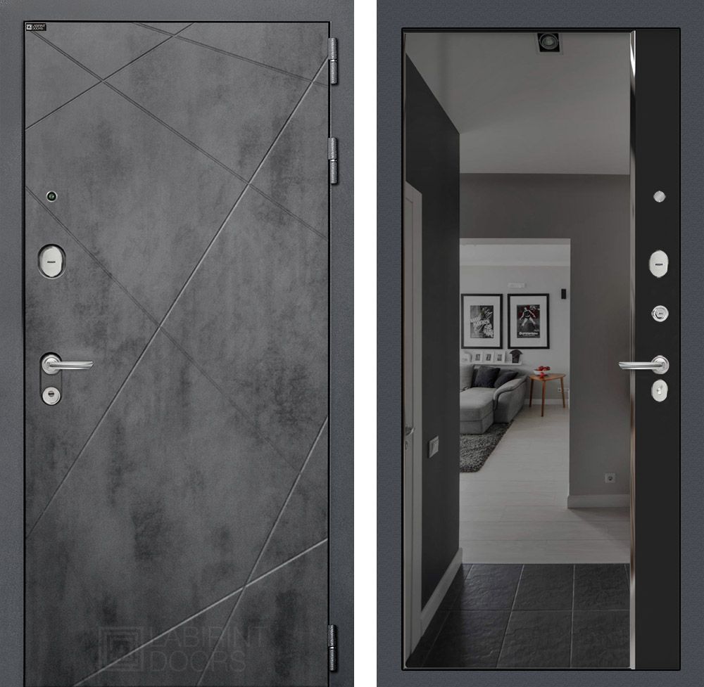 Входная дверь Лабиринт LOFT с зеркалом Панорама с тонировкой - Черный кварц