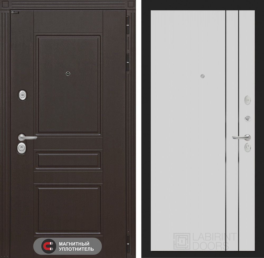 Входная дверь Лабиринт Мегаполис 10 - Белый рельеф софтстанет идеальным решением для тех, кто ценит надежность и современный дизайн. Белый софт в сочетании с элегантной черной вставкой создает стильный акцент в любом интерьере, а усиленная конструкция гарантирует максимальную безопасность, что особенно актуально для квартир и офисов.