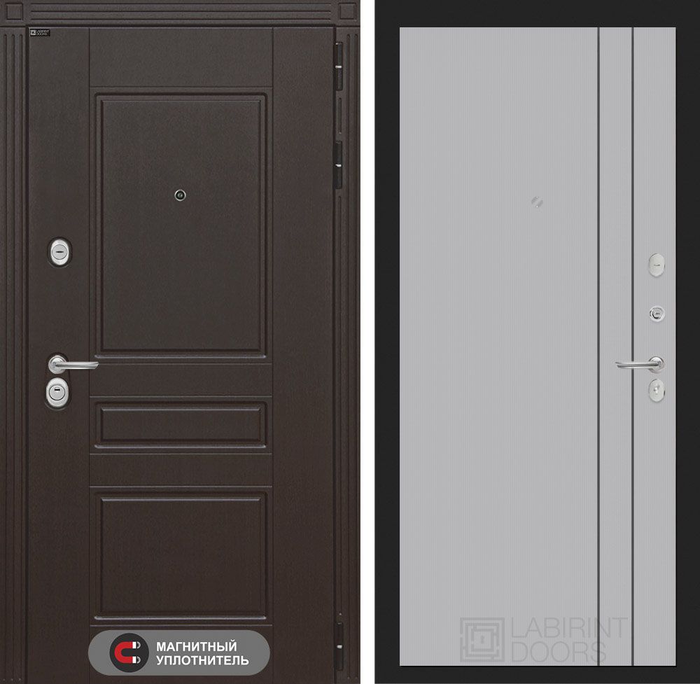 Входная дверь Лабиринт Мегаполис 10 - Серый рельеф софт станет идеальным решением для тех, кто ценит надежность и современный дизайн. Белый софт в сочетании с элегантной черной вставкой создает стильный акцент в любом интерьере, а усиленная конструкция гарантирует максимальную безопасность, что особенно актуально для квартир и офисов.