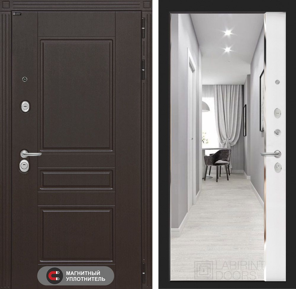 Входная дверь Лабиринт Мегаполис - с зеркалом Панорама Белый софт
