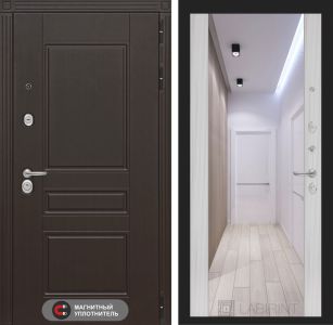 Входная дверь Лабиринт Мегаполис с зеркалом Максимум - Сандал белый