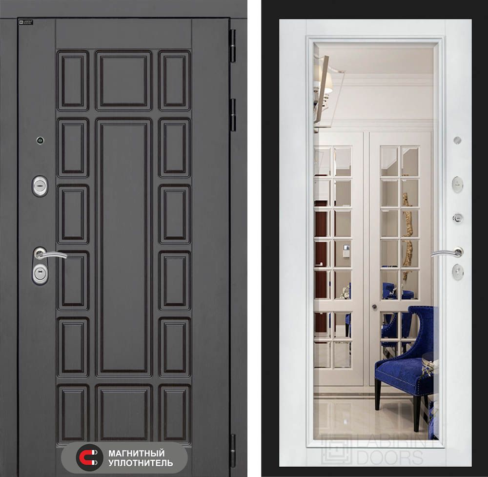 Входная дверь Лабиринт Нью-Йорк - Белый софт Зеркало с фацетом