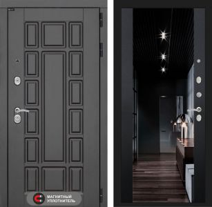 Входная дверь Лабиринт Нью-Йорк - Черный кварц Зеркало Максимум с тонировкой