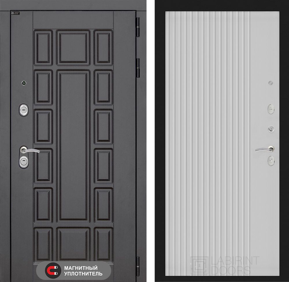 Входная дверь Лабиринт Нью-Йорк 03 - Белый софт – идеальное решение для вашего дома или офиса. Толщина металла 1,8 мм и усиленные ребра жесткости обеспечивают высокую степень безопасности. Дверь утеплена базальтовой плитой, имеет три контура уплотнения и современный замковый карман. Основной и дополнительный замки гарантируют максимальную защиту. Элегантный внешний вид, отделка MDF в цвета "Венге" с внутренней панелью "Белый софт" гармонично впишется в любой интерьер. Гарантия на установку и дверь - 1 год. Доставка по Москве и РФ.