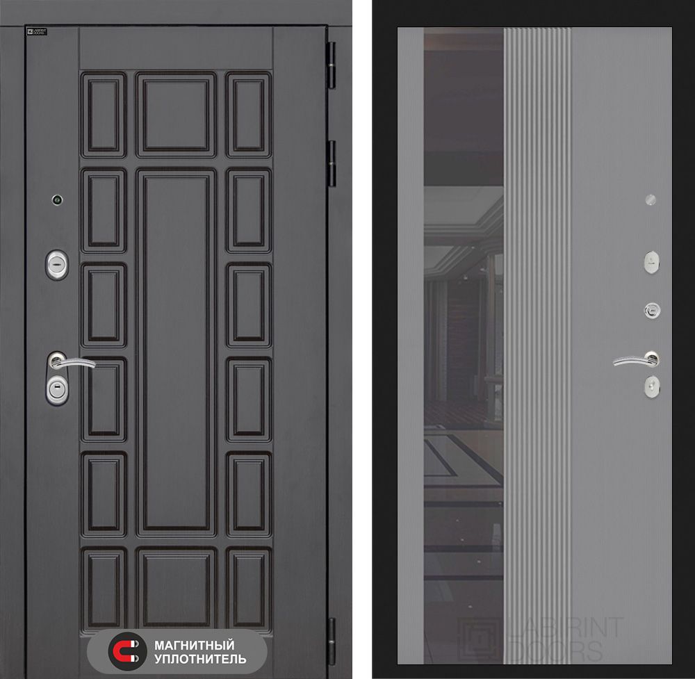 Входная дверь Лабиринт Нью-Йорк 32 - Серый софт рельеф, зеркальная отделка, высокая безопасность