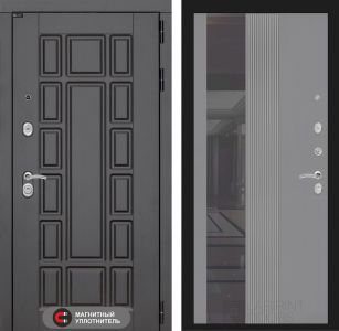 Входная дверь Лабиринт Нью-Йорк 32 - Зеркало тонированное Серый софт рельеф