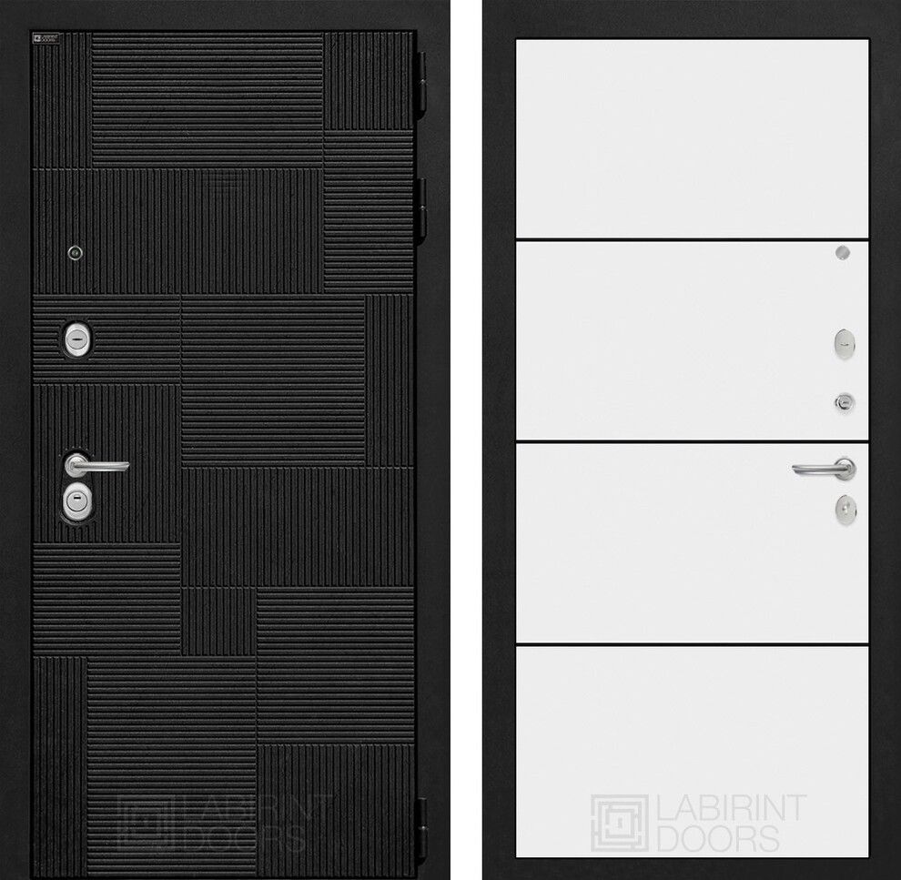 Входная дверь Лабиринт PAZL 25 - Белый софт, черный молдинг