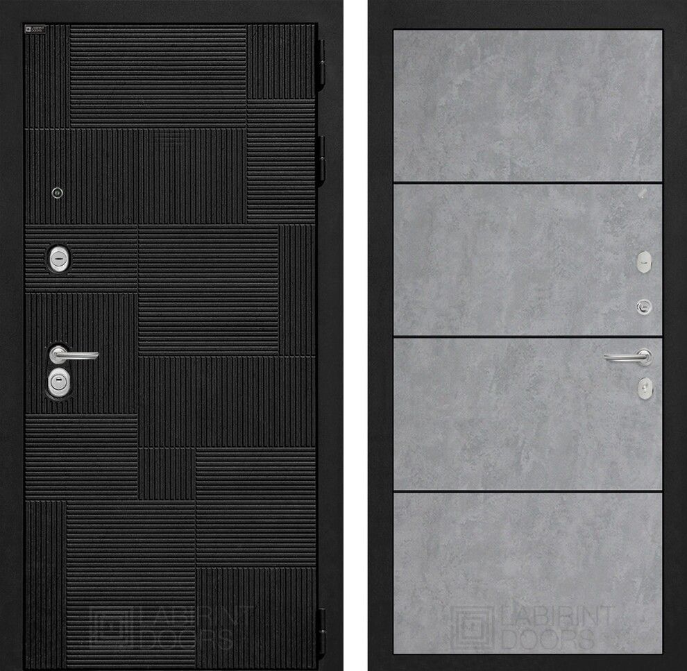 Входная дверь Лабиринт PAZL 25 - Бетон светлый, черный молдинг