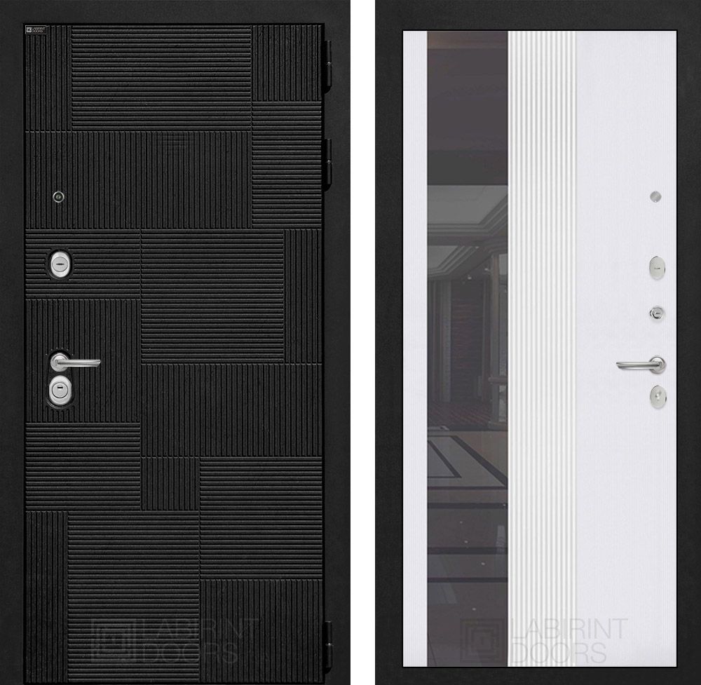 Входная дверь Лабиринт Пазл (PAZL) 32 - Зеркало тонированное Белый софт рельеф