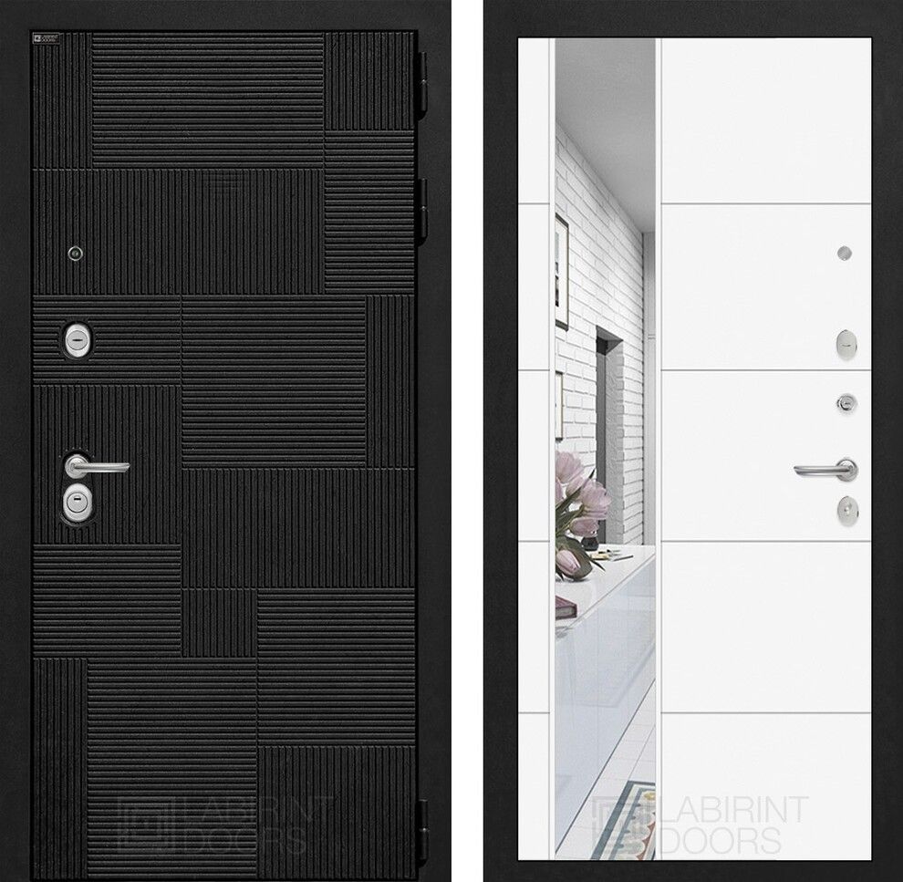 Входная дверь Лабиринт PAZL с зеркалом 19 - Белый софт