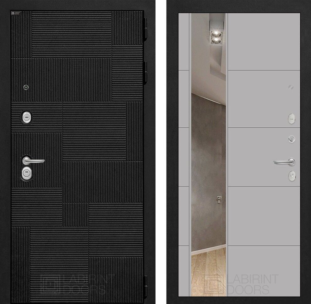 Входная дверь Лабиринт PAZL с зеркалом 19 - Грей софт сочетает в себе современный дизайн и высокую степень безопасности. Эта дверь станет отличным выбором как для квартиры, так и для офиса, обеспечивая надежную защиту вашего помещения и придавая ему элегантный внешний вид.