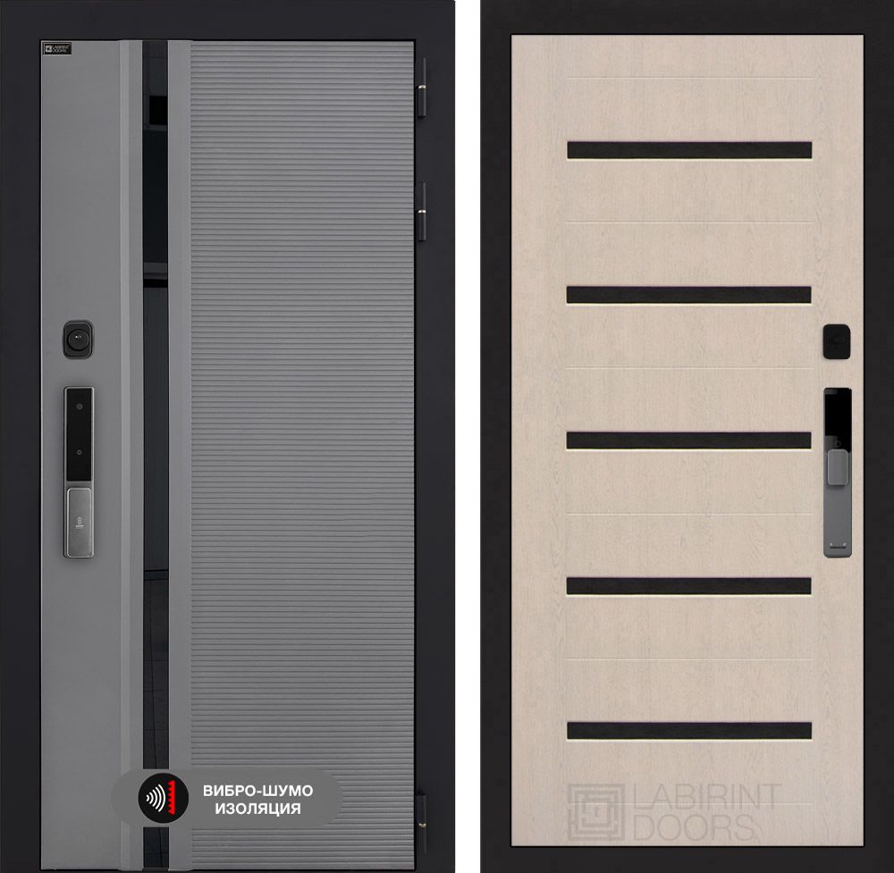 Входная дверь Лабиринт Пиано Смарт 2.0 - 01 Беленый дуб, стекло черное
