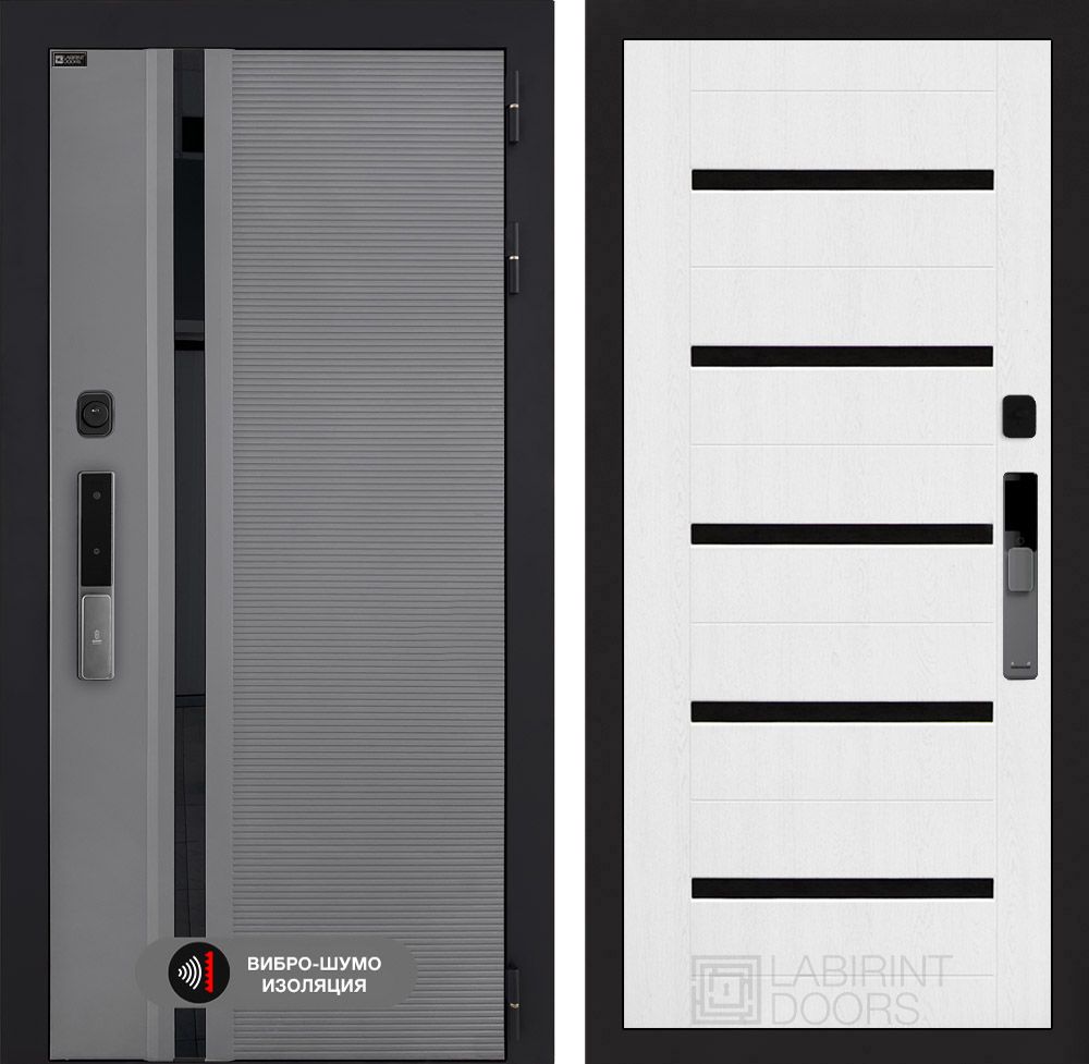 Входная дверь Лабиринт Пиано Смарт 2.0 - 01 Белое дерево, стекло черное