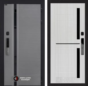 Входная дверь Лабиринт Пиано Смарт 2.0 - 02 Сандал белый, стекло черное