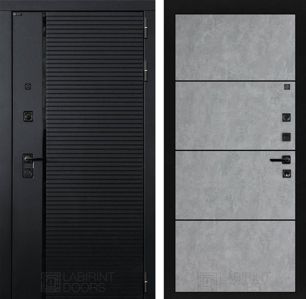 Входная дверь Лабиринт PIANO 25 - Бетон светлый, черный молдинг