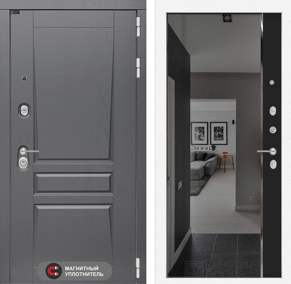 Входная дверь "Лабиринт Мегаполис" с зеркалом Панорама в цвете "Белый софт" - это идеальное решение для вашего дома. Устойчивость к взломам гарантирует сталь толщиной 1,8 мм и два усиленных ребра жесткости. Дверь имеет систему из трех контуров уплотнений для надежной тепло- и шумоизоляции. Цилиндровый замок Kale и сувальдный замок Border обеспечивают высший уровень безопасности. Элегантный дизайн с декоративной МДФ панелью и зеркалом добавляет стиля в любой интерьер. Доставка по Москве и регионам РФ. Гарантия на установку и двери - 1 год, на замки - 3 года.