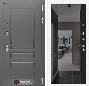 Входная дверь Лабиринт Платинум - с зеркалом Панорама с тонировкой Черный кварц