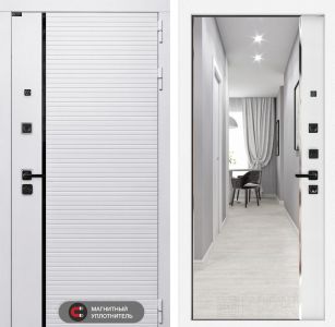 Входная дверь Лабиринт ROYAL замок Mottura с зеркалом Панорама Белый софт