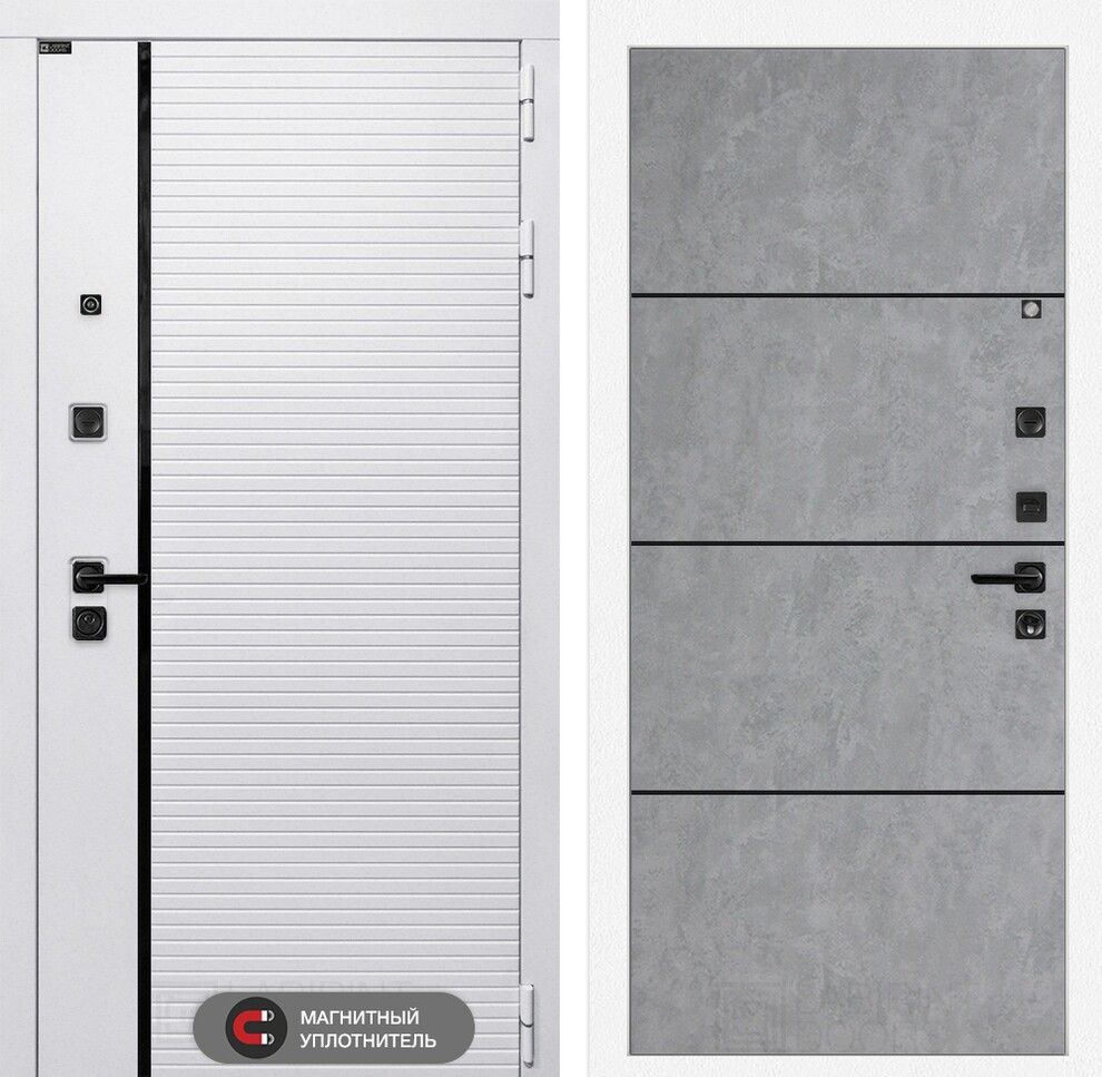 Входная дверь Лабиринт ROYAL 25 в цвете "Бетон светлый" с черным молдингом сочетает в себе надежность, теплоизоляцию и стильный внешний вид. Эта дверь станет не только защитой вашего дома или офиса, но и элегантным элементом интерьера, который подчеркнет ваш вкус.