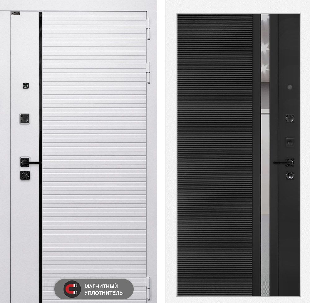 Отделка снаружи:Современная MDF панель 10 мм с наличником, цвет "Лофт белый", вставка черный молдинг
