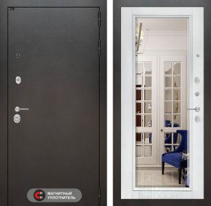 Входная дверь Лабиринт SILVER - Белый софт Зеркало с фацетом