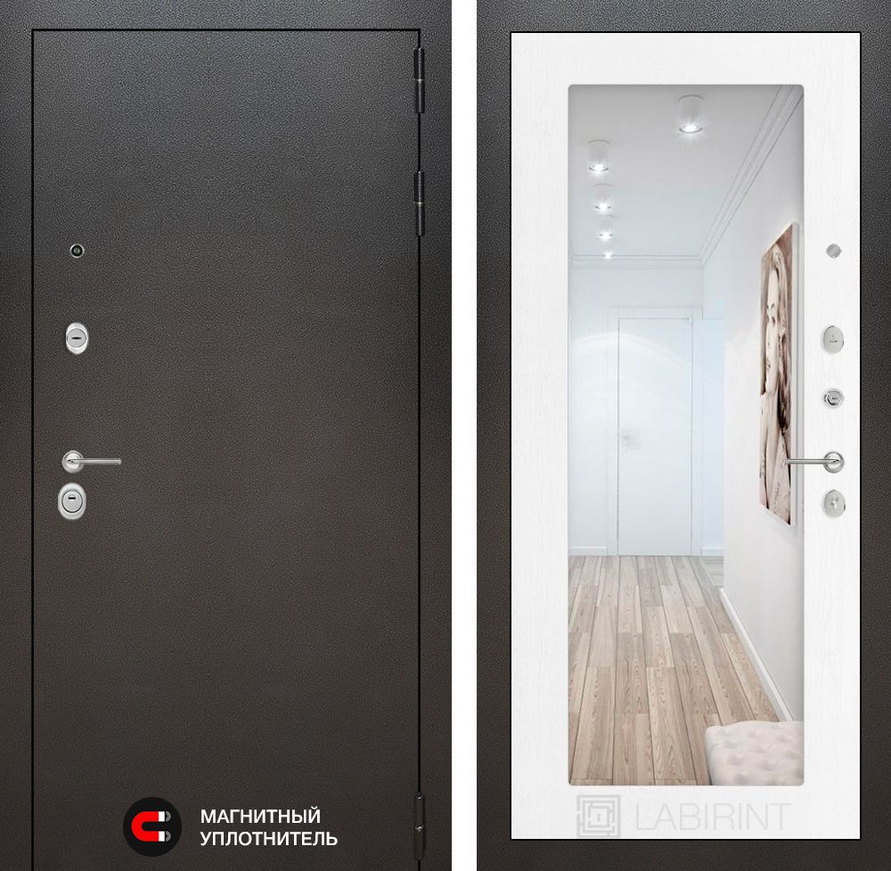 Входная дверь Лабиринт SILVER, цвет белое дерево, украшенная зеркальной панелью. Превосходная защита и современный стиль