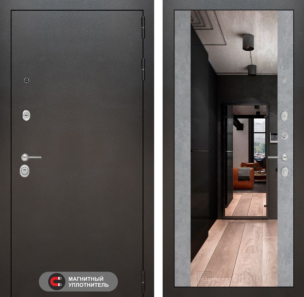 Входная дверь Лабиринт SILVER с Зеркалом Максимум - Бетон светлый