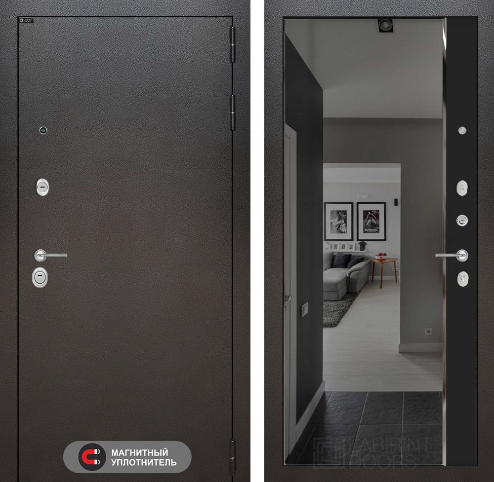 Входная дверь Лабиринт SILVER - Черный кварц, Зеркало Панорама, безопасность и стиль