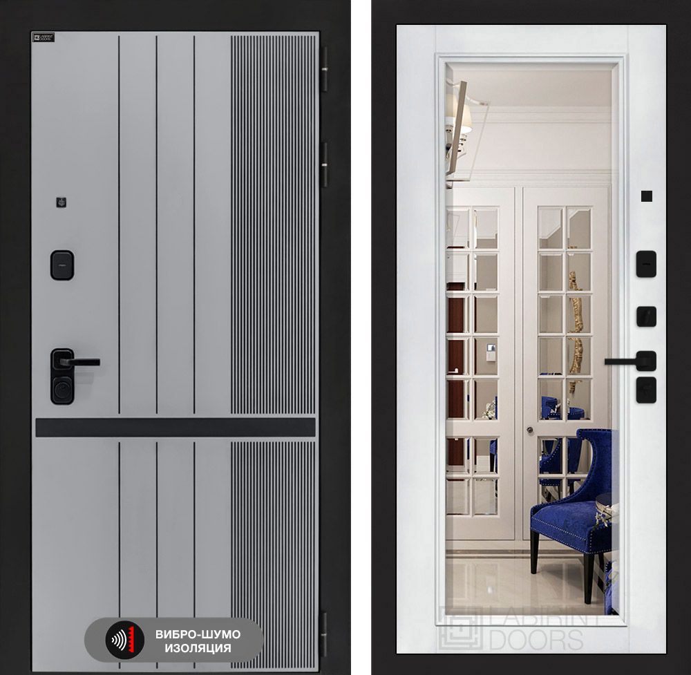 Входная дверь Лабиринт ИССИДА (ISSIDA) - 32 с тонированным зеркалом и белым софт рельефом — идеальное решение для вашей квартиры. Толщина металла 1,8 мм и 2 ребра жесткости обеспечивают надежность и защиту. Три контура уплотнения и акустический вибропоглощающий материал гарантируют шумоизоляцию. Двухсистемный замок Гардиан 75.14 обеспечивает высокий уровень безопасности. Утепленное короб и полотно из базальтовой плиты сохранят тепло. Элегантный дизайн с фрезерованной МДФ панелью и черной муаровой покраской подчеркнет стиль вашего интерьера. Доставка по Москве и России!