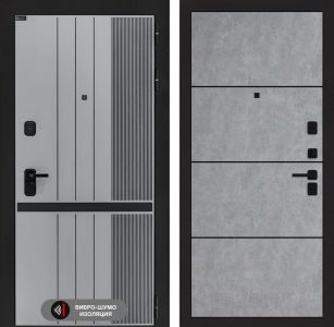 Входная дверь Лабиринт SKYLAB 25 – Бетон светлый, черный молдинг
