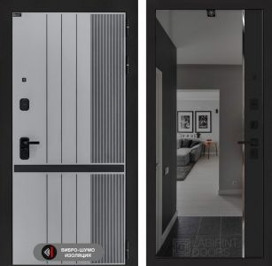 Входная дверь Лабиринт ИССИДА (ISSIDA) - 32 с тонированным зеркалом и белым софт рельефом — идеальное решение для вашей квартиры. Толщина металла 1,8 мм и 2 ребра жесткости обеспечивают надежность и защиту. Три контура уплотнения и акустический вибропоглощающий материал гарантируют шумоизоляцию. Двухсистемный замок Гардиан 75.14 обеспечивает высокий уровень безопасности. Утепленное короб и полотно из базальтовой плиты сохранят тепло. Элегантный дизайн с фрезерованной МДФ панелью и черной муаровой покраской подчеркнет стиль вашего интерьера. Доставка по Москве и России!