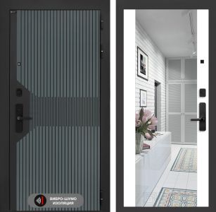 Входная дверь модели "Лабиринт Смартлаб", выполненная в дизайнерском решении "зеркало Максимум Белый софт" представляет собой высокотехнологичное решение для обеспечения как эстетической привлекательности, так и функциональной эффективности.