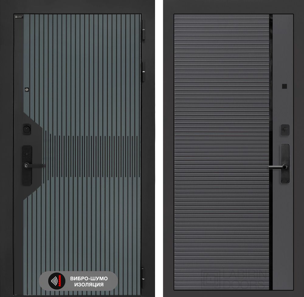 Входная дверь Лабиринт Смартлаб 22 – Графит софт, черная вставка