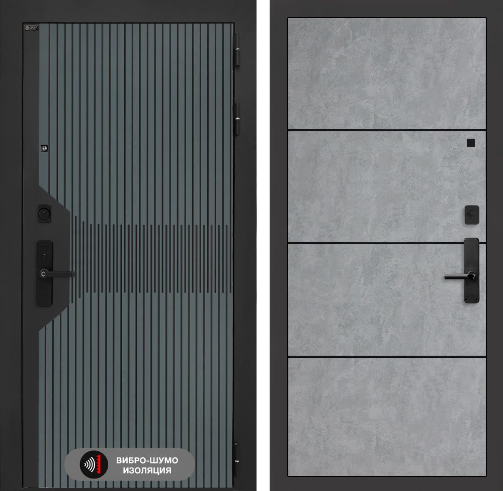 Входная дверь Лабиринт Смартлаб 25 – Бетон светлый, черный молдинг