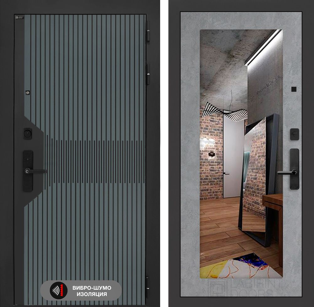 Входная дверь Лабиринт Смартлаб с Зеркалом 18 – Бетон светлый