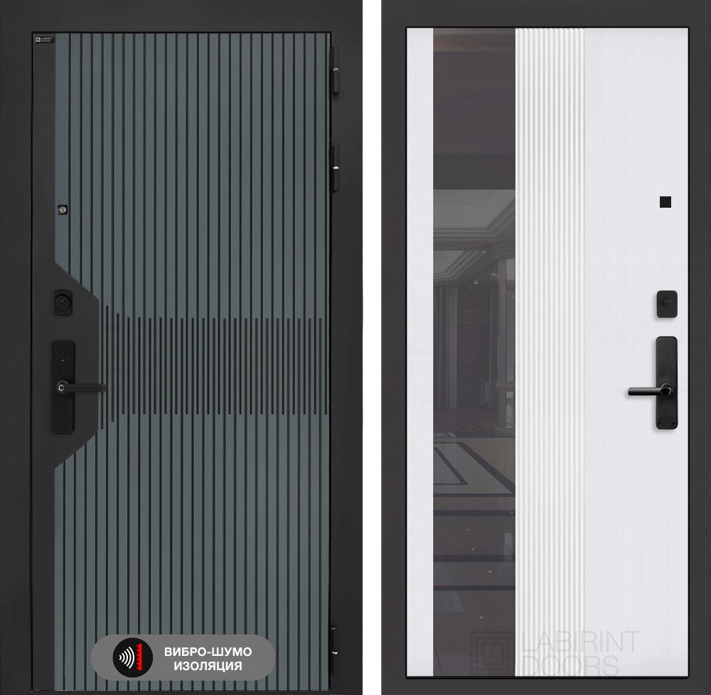 Входная дверь Лабиринт Смартлаб с Зеркалом 32 тонированным – Белый рельеф софт