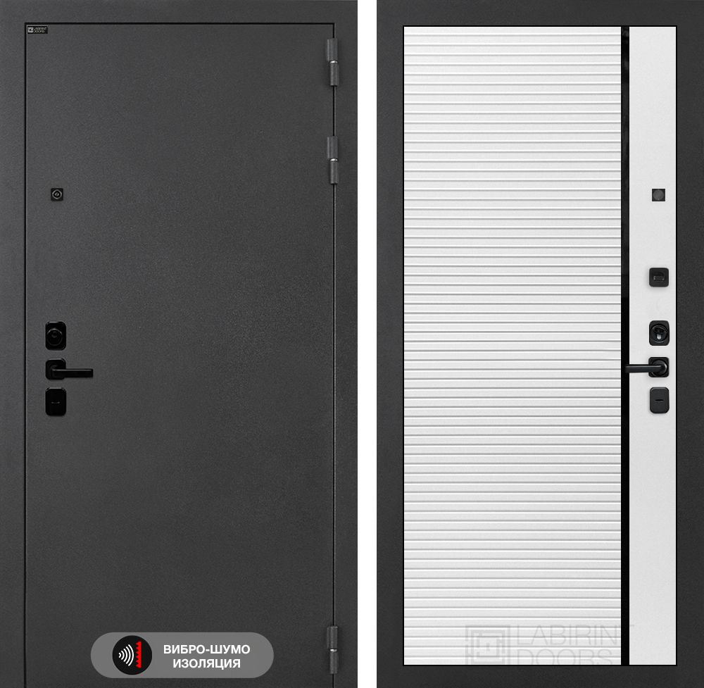Входная дверь Лабиринт Соналаб 13 - Белый софт идеально подходит для установки в квартиры и офисы. Изготовленная из высококачественной стали толщиной 1,8 мм с двумя усиленными ребрами жесткости, эта дверь обеспечивает надежную защиту и долговечность. Утепленная конструкция с базальтовой плитой и тройным контуром уплотнения гарантирует комфорт в любое время года. Двухсистемный замок Гардиан 75.14 обеспечивает максимальную безопасность. Элегантный дизайн с декоративной MDF панелью и матовым покрытием "Муар серый" дополнит любой интерьер. Доставка по Москве и РФ.