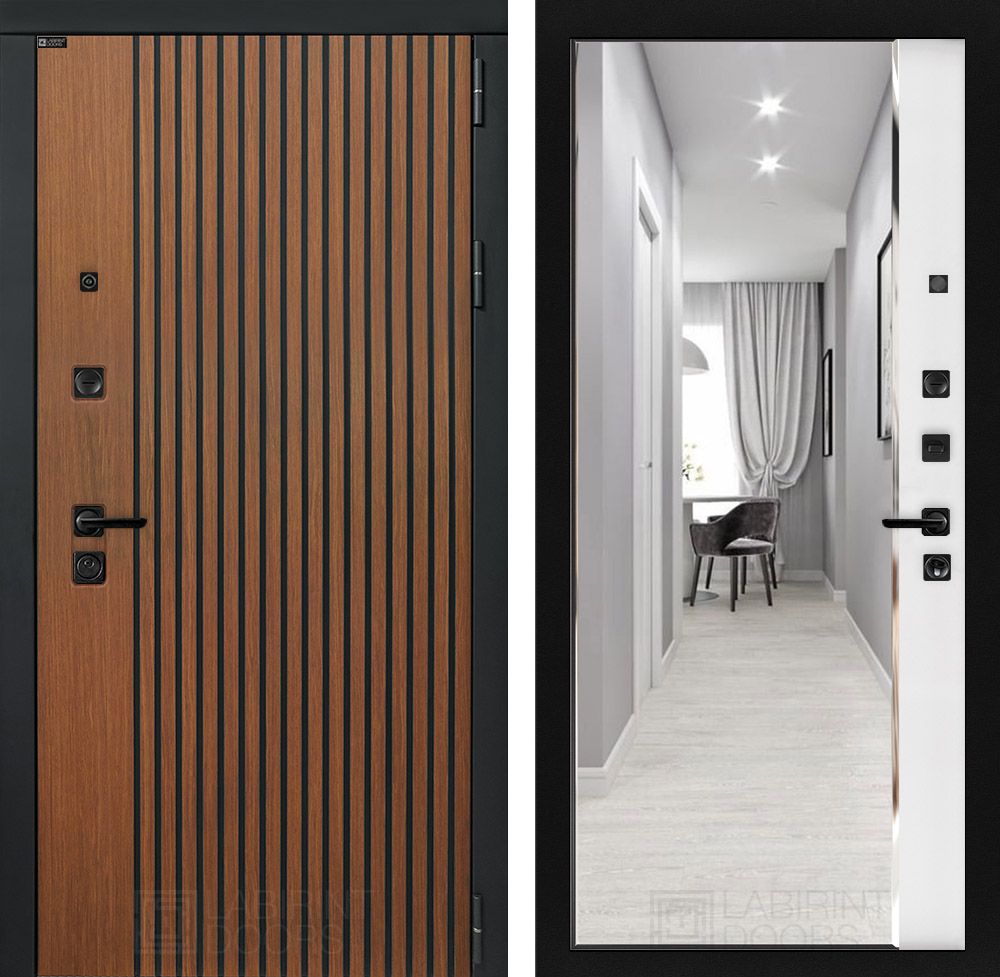 Входная дверь Лабиринт STORM с зеркалом Панорама Белый софт