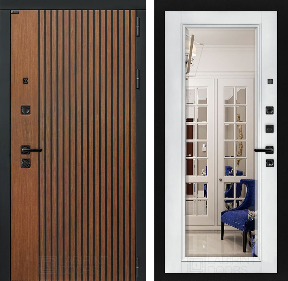 Входная дверь Лабиринт STORM с Зеркалом Фацет - Белый софт