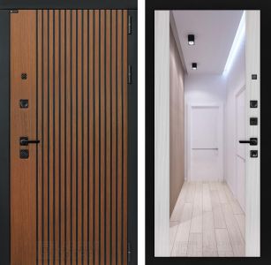 - Эстетичный внешний вид — декоративная отделка в цвете "Дуб кантри темный" и "Сандал белый" делает дверь стильным элементом интерьера.