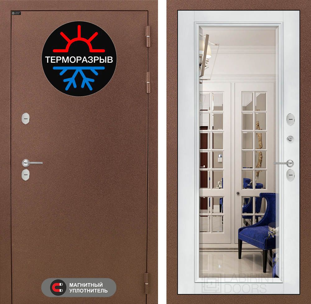 Входная дверь Лабиринт Термо Магнит - Белый софт Зеркало с фацетом