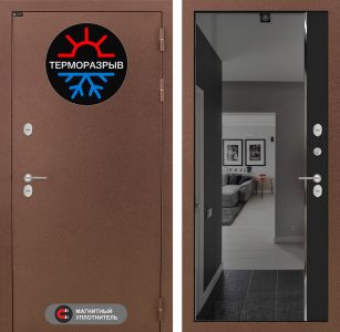 Входная дверь Лабиринт Термо Магнит - Черный кварц Зеркало Панорама: терморазрыв, надежная защита и элегантный дизайн