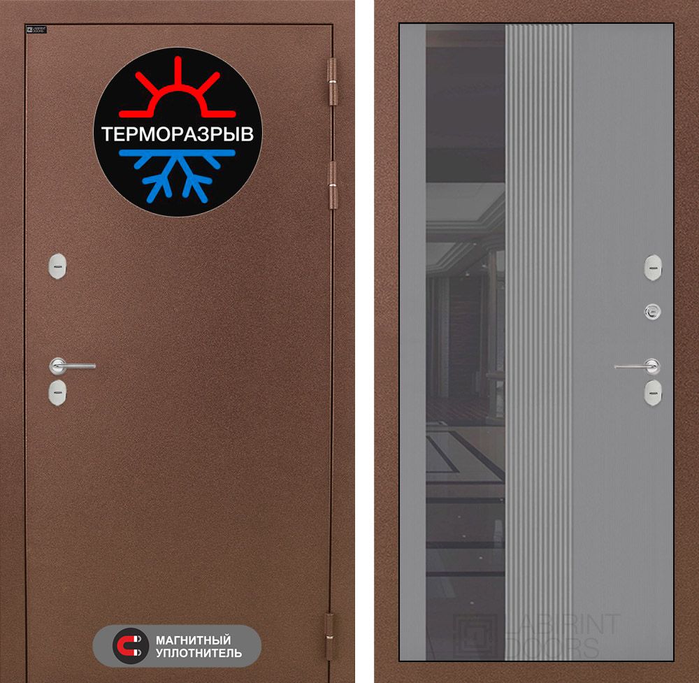 Входная дверь Лабиринт Термо Магнит 32 - Зеркало тонированное Серый софт рельеф