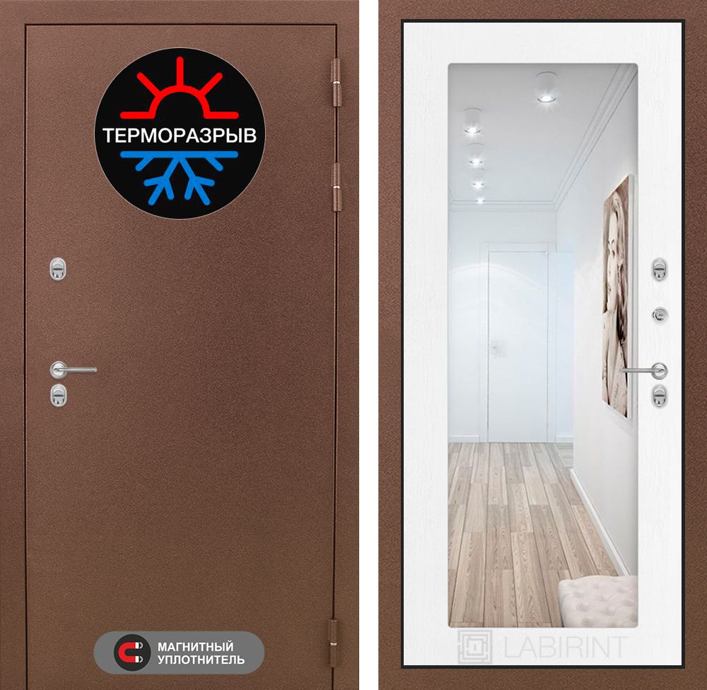 Входная дверь Лабиринт Термо Магнит с Зеркалом 18 - Белое дерево