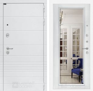 Входная дверь Лабиринт Трендо - Белый софт, зеркало с фацетом