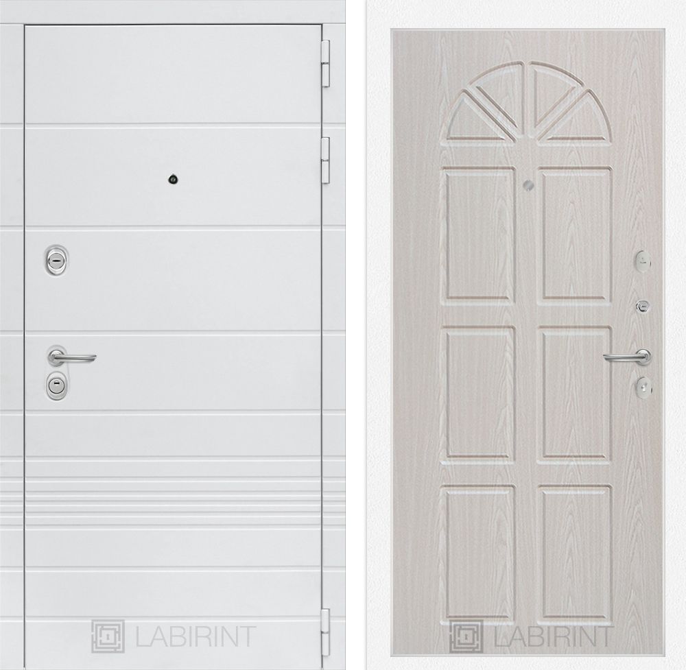 Входная дверь Лабиринт Трендо 01 в цвете "Сандал белый" с белым стеклом – идеальное решение для квартир и офисов. Устойчивость и безопасность обеспечивают сталь 1,8 мм и два замка (цилиндровый Гардиан и сувальдный Border) 4-го класса безопасности. Толщина двери — 125 мм с полноценным утеплением базальтовой плитой, что гарантирует тепло и комфорт. Элегантный дизайн с декоративными MDF панелями создаст стильный интерьер. Доставка по Москве и всем регионам РФ. Гарантия: 1 год на установку и дверь, 3 года на замки.