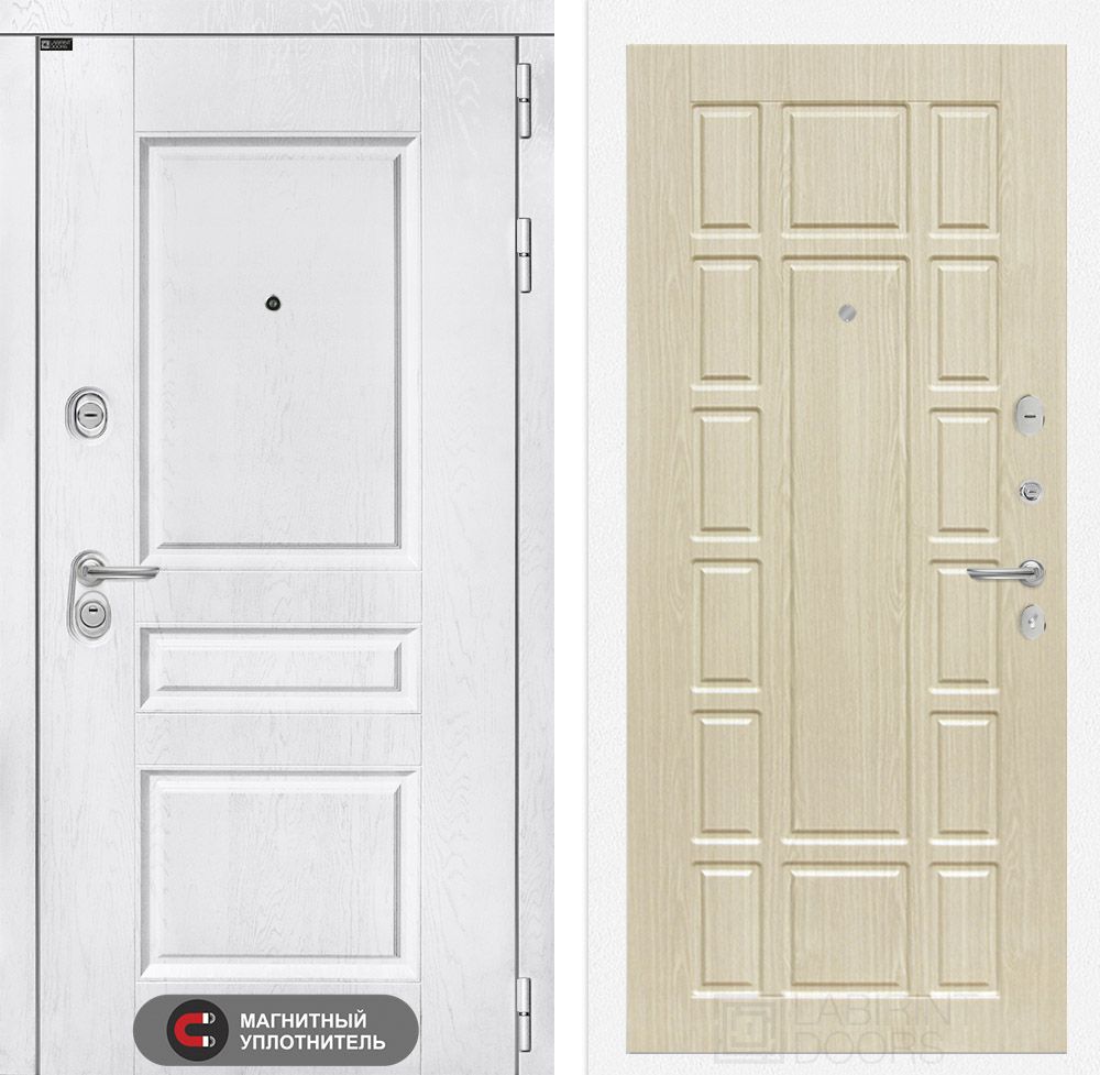 Входная дверь Лабиринт VERSAL 01 в цвете «Сандал белый» — идеальный выбор для квартиры или офиса. Обладая прочной стальной конструкцией толщиной 1,5 мм и утеплением из базальтовой плиты, она гарантирует надежную защиту и комфорт. Дверь оснащена высококлассными замками Гардиан и Border, что обеспечивает безопасность наивысшего уровня. Эстетичный дизайн с современными и классическими MDF панелями и белым стеклом сделает ваш интерьер стильным и уютным. Доставка доступна по Москве и всей России. Гарантия 3 года на замки.