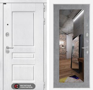 Входная дверь 18 - Бетон светлый, Декоративная панель MDF с зеркалом, Высокий уровень безопасности