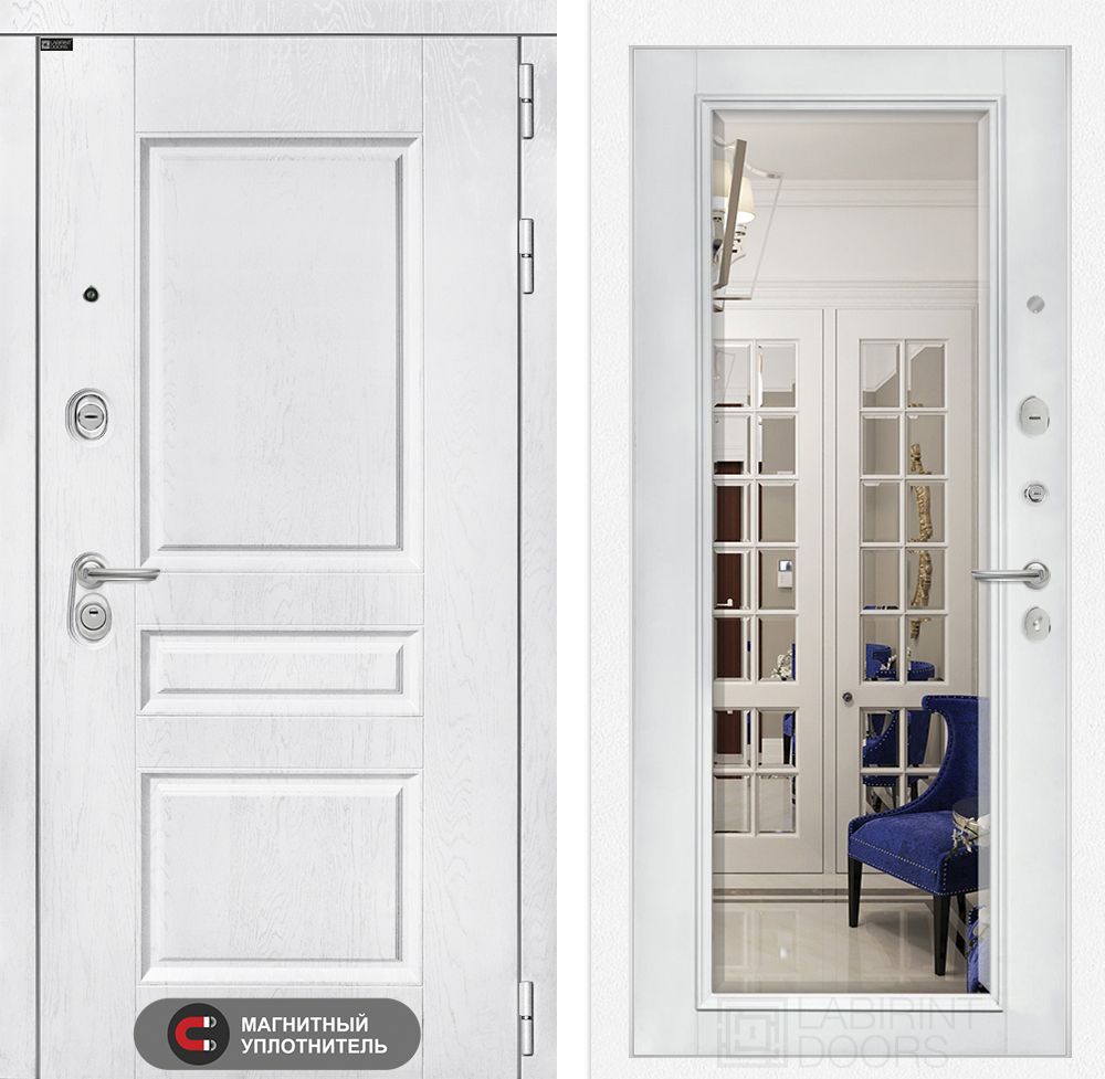 Входная дверь Лабиринт VERSAL с Зеркалом Фацет - Белый софт